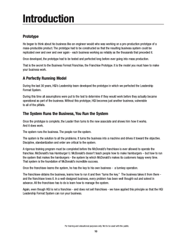 Again, even though HGI is not a franchise - and does not sell franchises - we have applied this principle so that the HGI Leadership Format System can run your business.