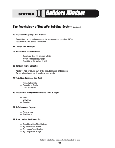 The Psychology of Hubert’s Building System (Continued) 25. Stop Recruiting People to a Business