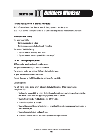 No. 2 – Runs an RMD Factory, the source of all future leadership and sets the example for your team