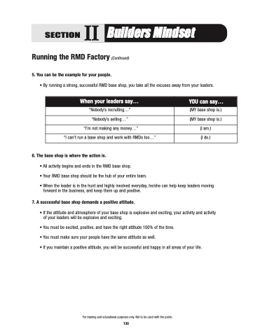 Running the RMD Factory (Continued) 5. You can be the example for your people.