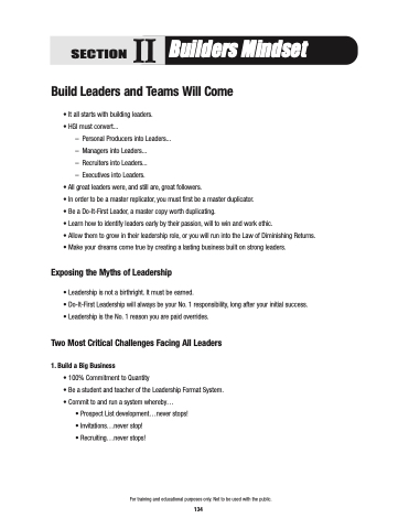 • Do-It-First Leadership will always be your No. 1 responsibility, long after your initial success. • Leadership is the No. 1 reason you are paid overrides.
