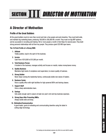 Section III — DIRECTOR OF MOTIVATION