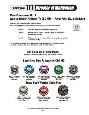 This Wealth Builder Pathway to EFC is an instant accountability system. People automatically count their recruiting numbers and direct legs to qualify for shirts and pins.