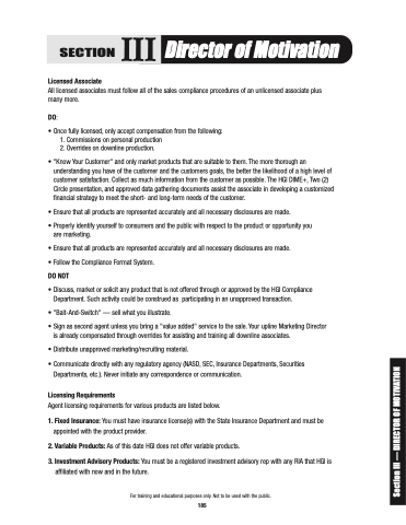 • Discuss, market or solicit any product that is not offered through or approved by the HGI Compliance Department. Such activity could be construed as participating in an unapproved transaction.