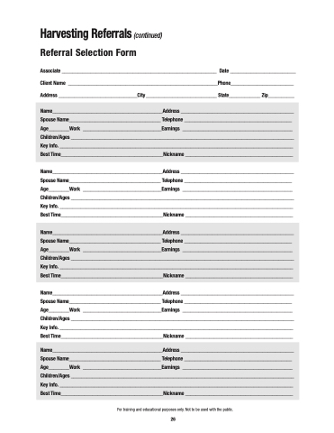 Name__________________________________________Address ___________________________________________ Spouse Name___________________________________ Telephone _________________________________________ Age________Work ______________________________Earnings __________________________________________ Children/Ages _____________________________________________________________________________________ Key Info. _________________________________________________________________________________________ Best Time_______________________________________Nickname _________________________________________