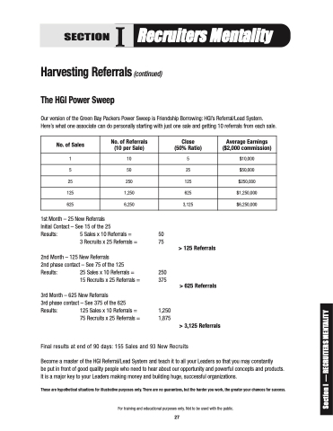 Our version of the Green Bay Packers Power Sweep is Friendship Borrowing: HGI’s Referral/Lead System. Here’s what one associate can do personally starting with just one sale and getting 10 referrals from each sale.