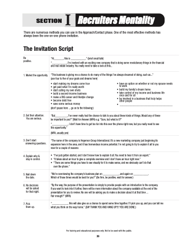 There are numerous methods you can use in the Approach/Contact phase. One of the most effective methods has always been the one-on-one phone invitation.