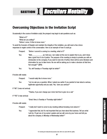 Occasionally in the course of invitation script, the prospect may begin to ask questions such as: