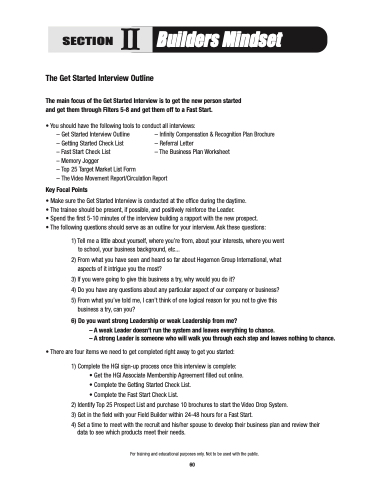 The main focus of the Get Started Interview is to get the new person started and get them through Filters 5-8 and get them off to a Fast Start.