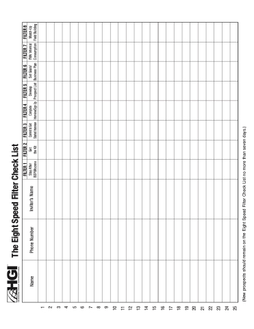 (New prospects should remain on the Eight Speed Filter Check List no more than seven days.)