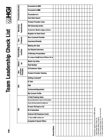 3. Video Circulation Report for each new recruit 4. Team Leadership Check List