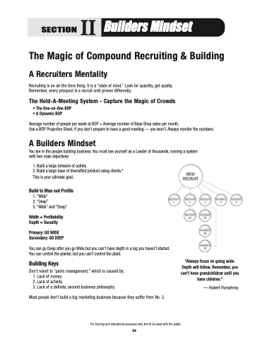 You are in the people building business. You must see yourself as a Leader of thousands, running a system with two main objectives: